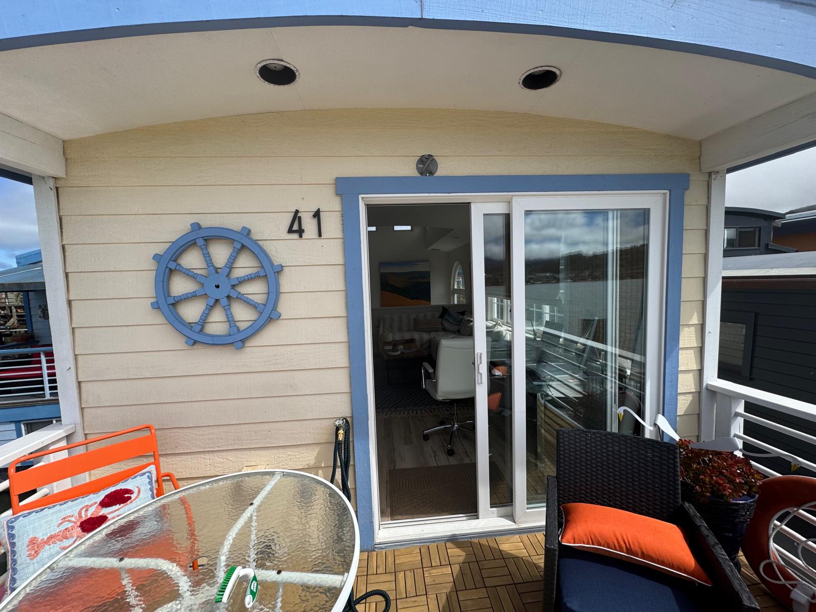 The finished mural completely transformed the floating home - making it feel lighter, more expansive, and integrated with its environment.